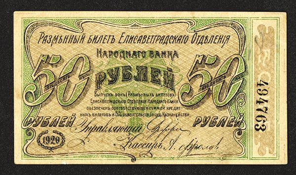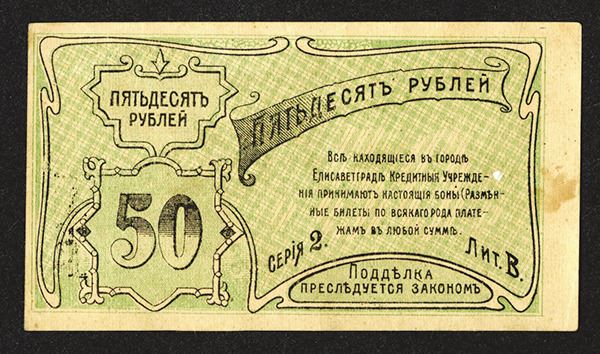 Russia, 50 Rublei, P-S325Aa Issued with series, black text on brown and green under print, back black on green under print, Series 2-B, S/N 494763, Choice AU with small area of pencil graffiti on upper right that is difficult to view, Unpriced in SCWPM, rare variety. (The Pogrebetsky Family Archives)