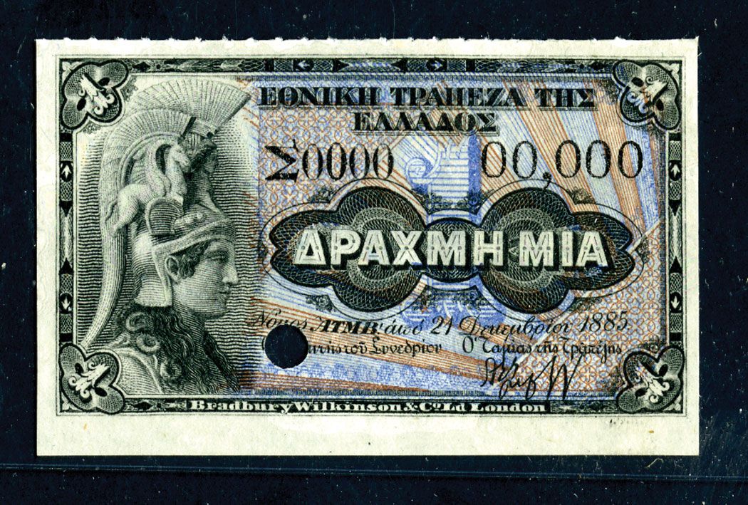 Greece, specimen note, 1 Drachma, L. 1885 (1897), P-40s, graded PMG 58 EPQ. Rare in this form. BWC.