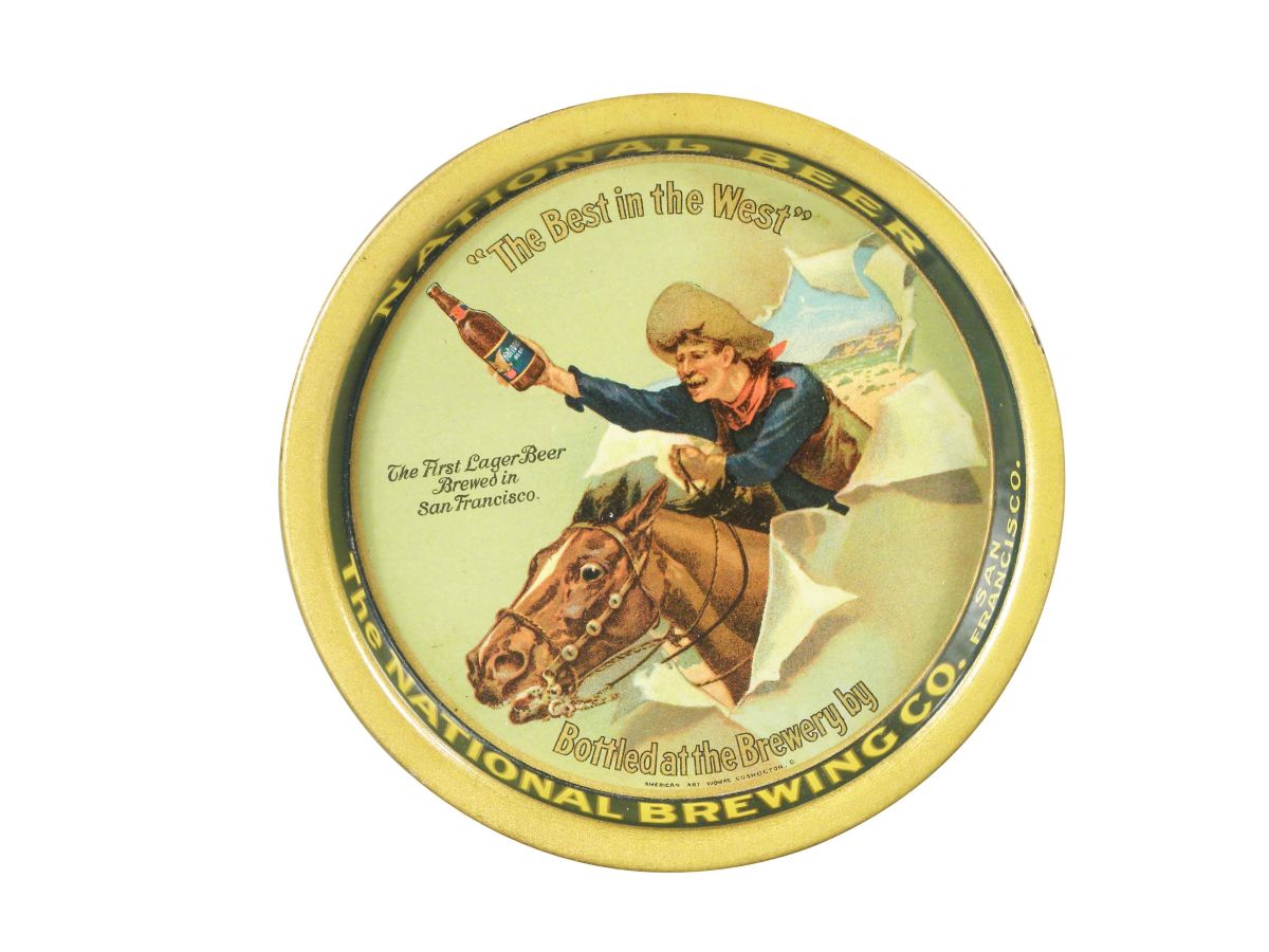 National Beer Tin Tip Tray. Entitled, "The Best in the West". The National Brewing Company, San Francisco. Excellent condition. 4 1/2 inch diameter.
