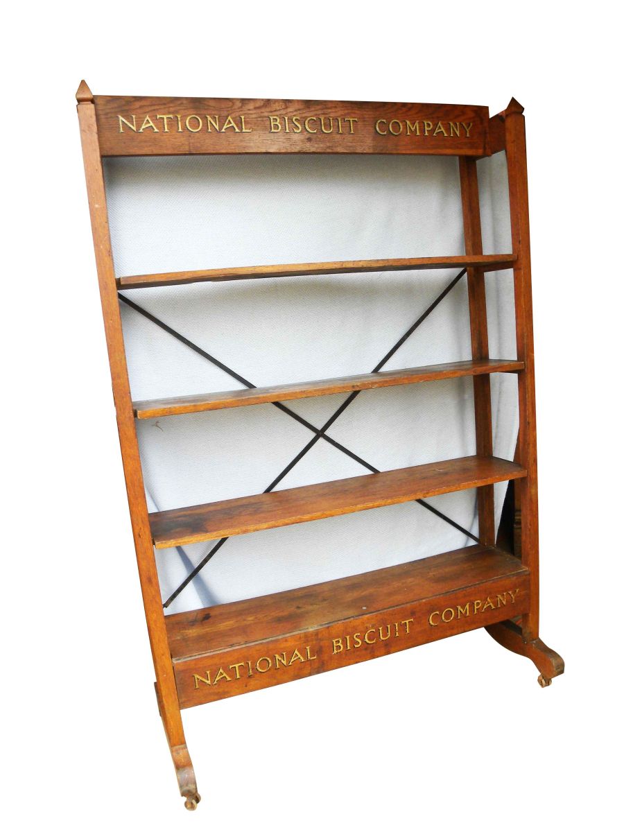 National Biscuit Co. Store Display Shelf. Oak with four shelves. Excellent original condition. 46 1/4 X 71 X 20 inches.