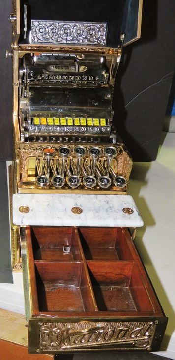 National Cash Register Candy Store Model 5. SN # 164969. All bronze with marble shelf. Narrrow indication with glass key checks. Professionally restored condition.