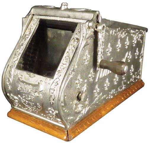 National Cash Register Co. Autographic Register. Seriel # 1619314. Nickel with oak base. 8 X 9 3/4 X 15 1/2 inches.