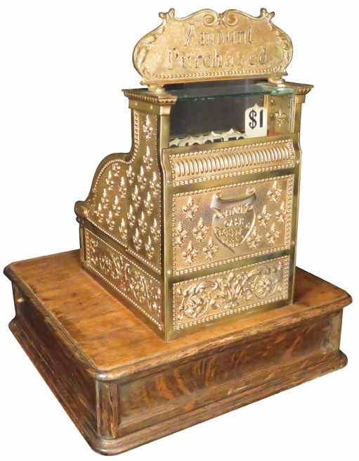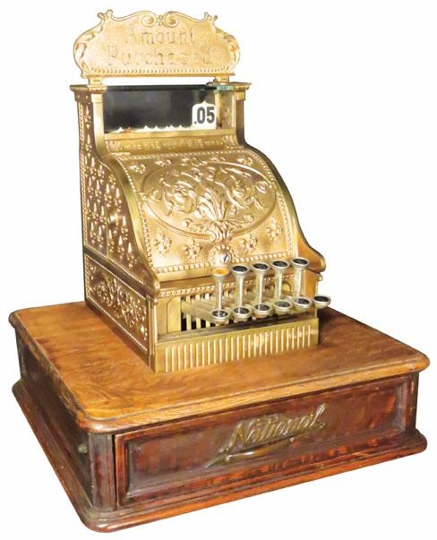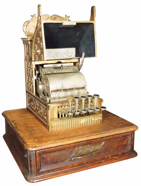 National Cash Register Co. Rare Barber Shop Model 6 with extented wood base. SN # 383875. A great survivor all original with original sign. Great original working condition.