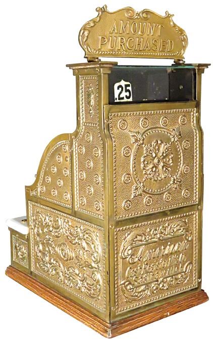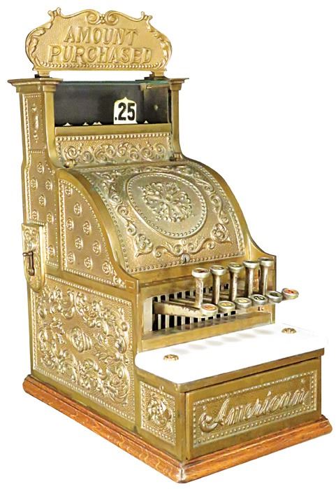 National Cash Register Co. Candy Store Model 1. SN# 103495. All brass with marble shelf and original top sign. Unrestored working condition, comes with key.