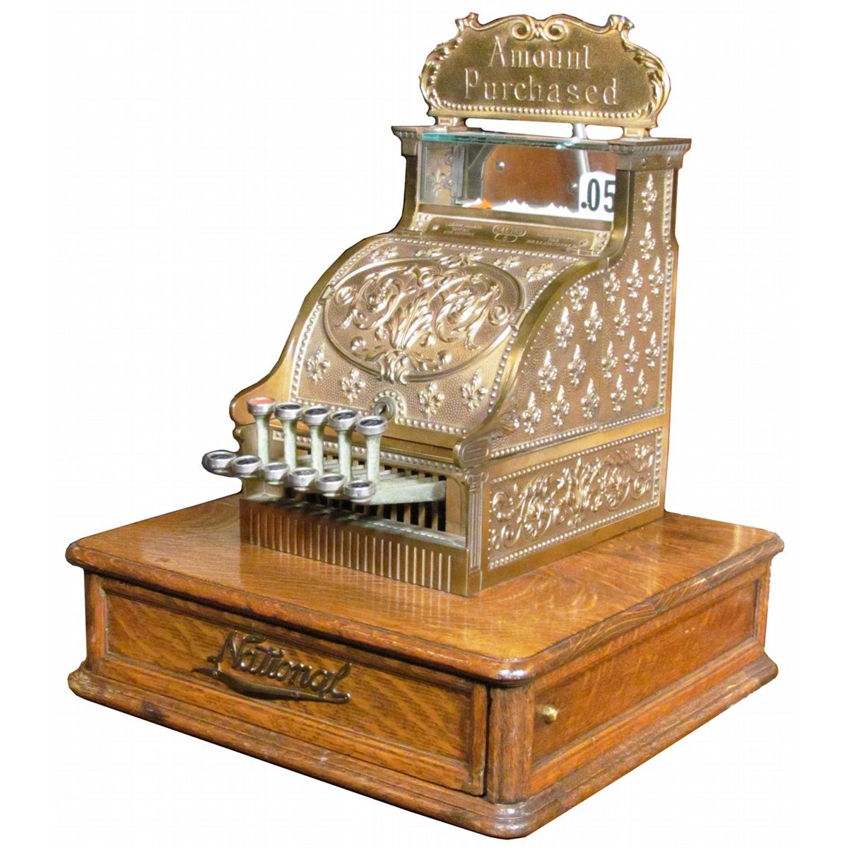 Rare National Cash Register Model 6 Barbershop Style. Extended oak base. Professionally restored working condition.