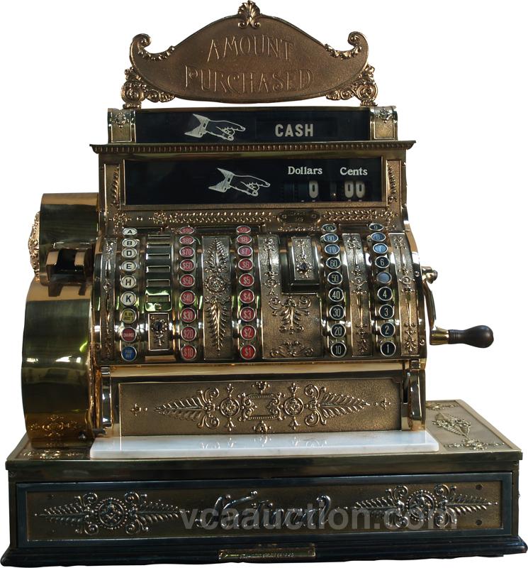 National Cash Register Model No. 349, wide base, large receipt cage & "Amount Purchased" top sign, nicely restored