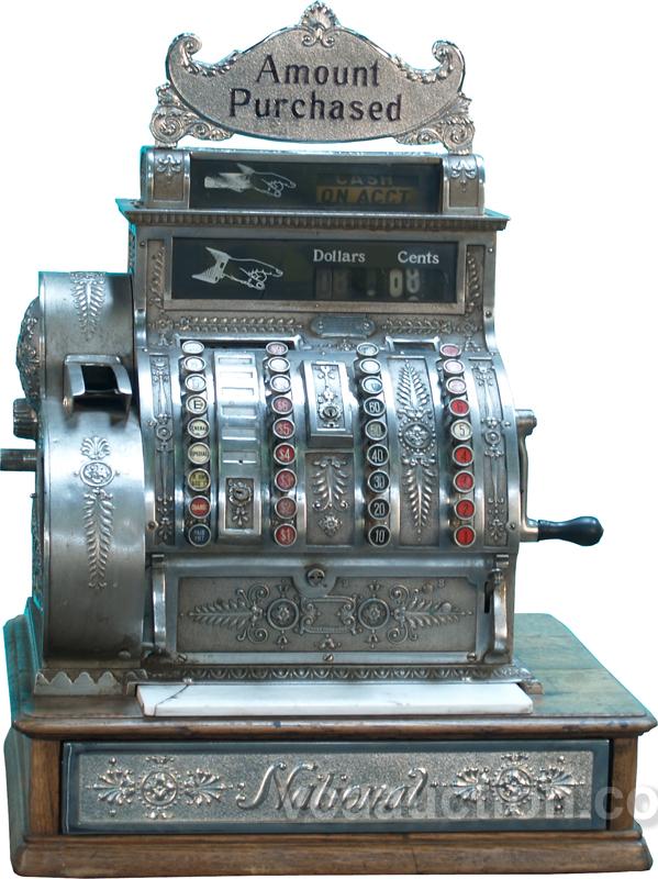 National Cash Register Model No. 442, nickle plated w/ "Amount Purchased" top sign