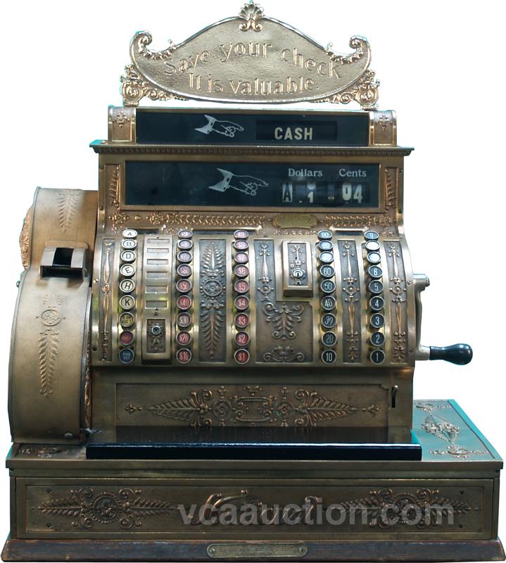 National Cash Register Model No. 452, all original brass w/ receipt cage & working bottom drawer