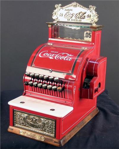 National Cash Register (NCR) Candy Store w/side tape dispenser. Restored in a Coca-Cola motif