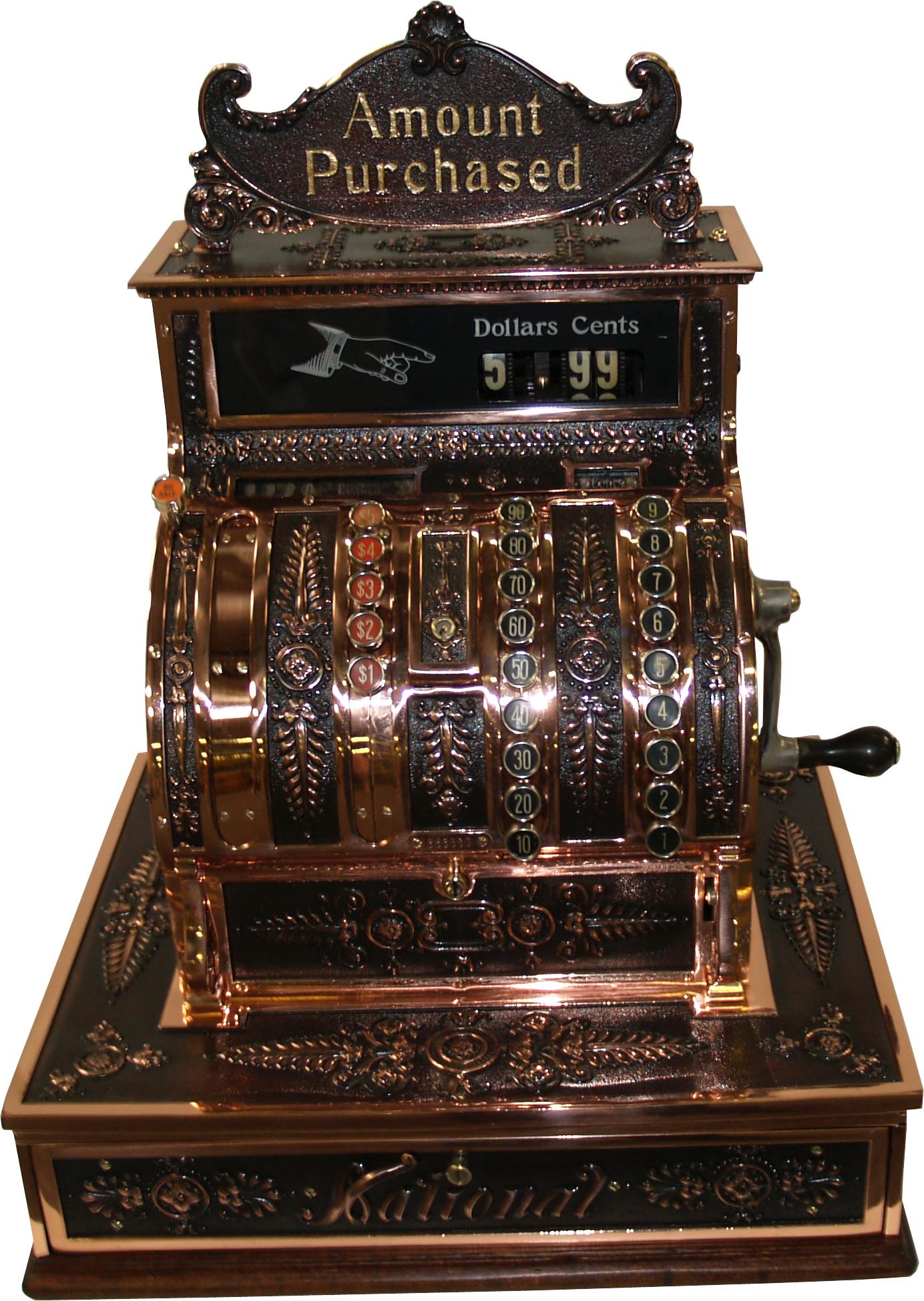 National Cash Register Rare, Model 410 Fresh Restoration on a Rare Model NCR rings only to $ 5.99 Antique Copper Plating Over Brass Top Sign is a Repro