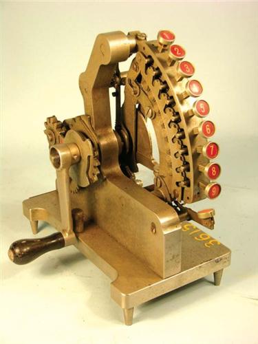 National Cash Register Salesman Sample model 3615A. Push button with hand crank mechanism. Came out of the NCR corporate archives department. Excellent Condition.