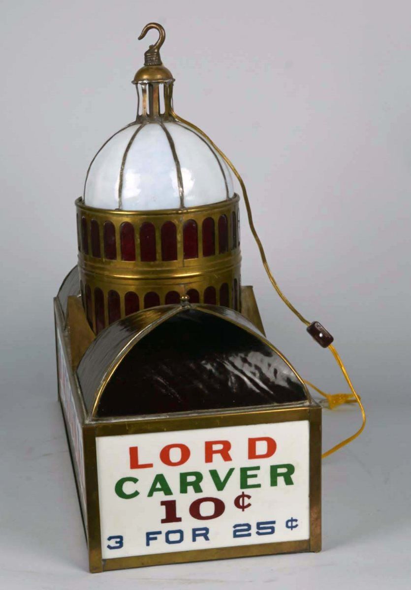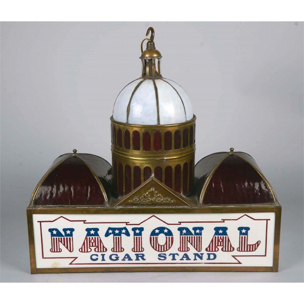 replica of a classical building w/ dome & gable, hanging leaded glass light, rewired & working Condition Good Size 23" x 10" x 22.5"