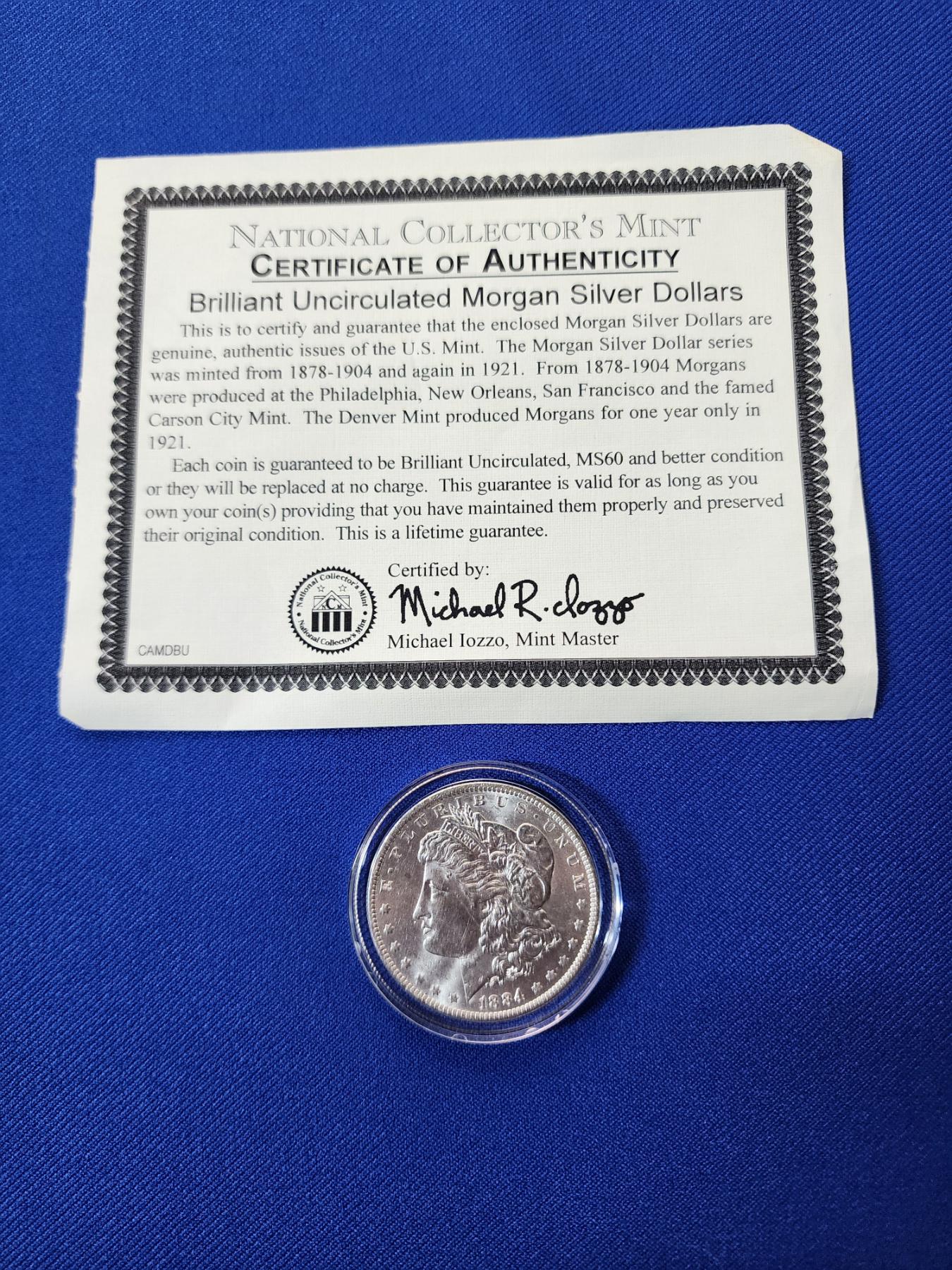 National Collector's Mint Brilliant Uncirculated 1884-O Morgan Silver Dollar