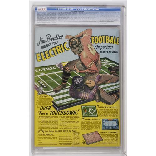 Any Lou Fine article you'll see mentions this underwater cover as one of the artist's greatest. But that's only part of the story - factor in this issue's scarcity, the impeccable pedigree, and the incredible condition and you've got a truly amazing comic book! The glossy, vibrant cover colors and the spotless white interior pages are icing on the cake for this one-of-a-kind treasure. Overstreet 2006 NM- 9.2 value = $3,200. CGC census 12/06: 1 in 9.6, none higher.<BR><BR><b>Shipping:</b> Comics - Slabbed (certified) (<a target="_blank" href="http://www.heritageauctions.com/common/shipping.php">view shipping information</a>)