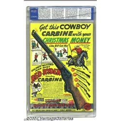 National Comics #9 (Quality, 1941) CGC VF- 7.5 Off-white to white pages. Alex Schomburg made a name for himself with his intricate and detailed "busy" cover style, but Lou Fine gives Schomburg a run for his money on this incredible flag cover that almost redefines the term "action-packed!" This Golden Age gem contains stories featuring Uncle Sam, Merlin, Quicksilver, and Kid Patrol, with artwork by Klaus Nordling, Dan Zolnerowich, George Tuska, John Celardo, and Nick Cardy. There is some wear at the corners but this copy's clean, bright, and colorful cover displays Lou Fine's amazing artwork to its best advantage. There is currently only one copy of this issue that has been graded higher by CGC. Overstreet 2003 VF 8.0 value = $795. Important notice: Heritage usually auctions material at the rate of 200-250 lots per hour. On some occasions eBay Live bid software or the Internet may not be able to keep up with the pace of the auction. We recommend placing a realistic absentee bid now as insurance to avoid disappointment. Occasionally the auctioneer may eliminate or reject an eBay Live bid, and the auctioneer may also reopen a lot after the close of the eBay live bidding (usually because we missed an audience bid), and may reject your bid even if it shows you as the winning bidder. By bidding via eBay Live, you agree that Heritage may award the lot to another bidder at its sole discretion under the circumstances described above or any other reasonable circumstances. Since eBay bids are not shown to us until we open the lot on the floor, we treat those bids just like floor bids. In most cases the floor responds before the eBay bid is presented to us, due to Internet lag time, so for consistency we have made it a policy that floor bids are always considered first over tie eBay live bids. Also please note that all Heritage lots purchased through eBay Live carry a 20% Buyer's Premium. Please make sure you read the Terms and Conditions before you bid.