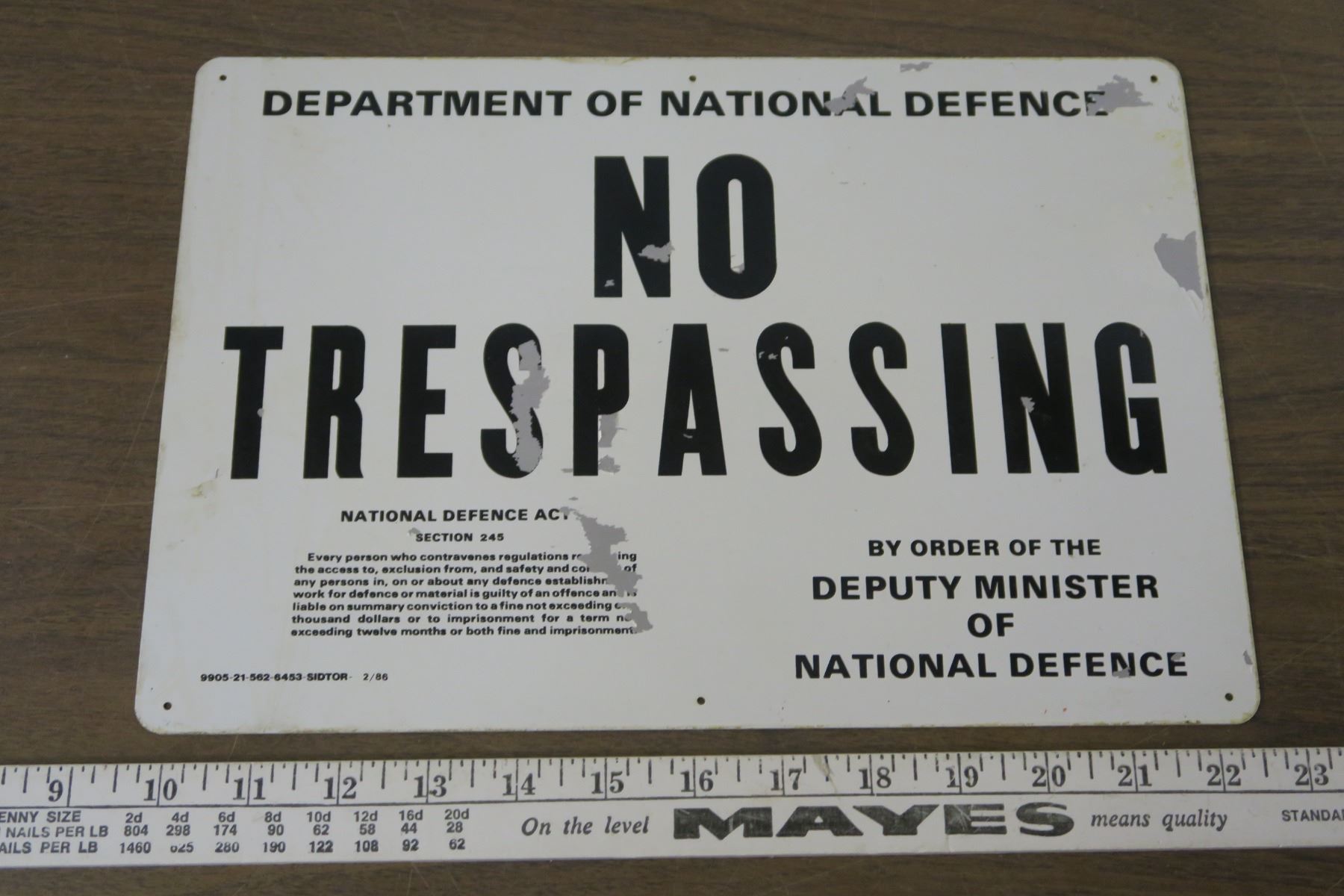 National Defence "No Trespassing" Metal Sign 13x9"