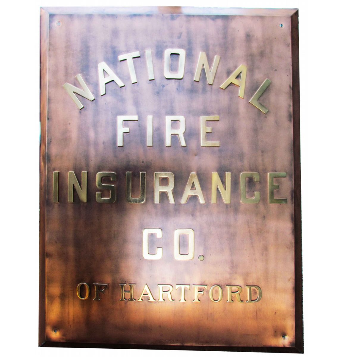 National Fire Insurance Copper and Brass Office Building Outdoor Sign. Beveled edge. Excellent condition. 34 X 44 inches.