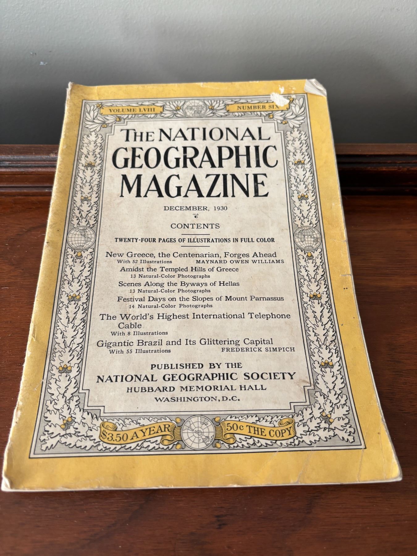 December 1930 Edition, National Geographic, in fair condition for its age. Some coloured and many black/white photos.