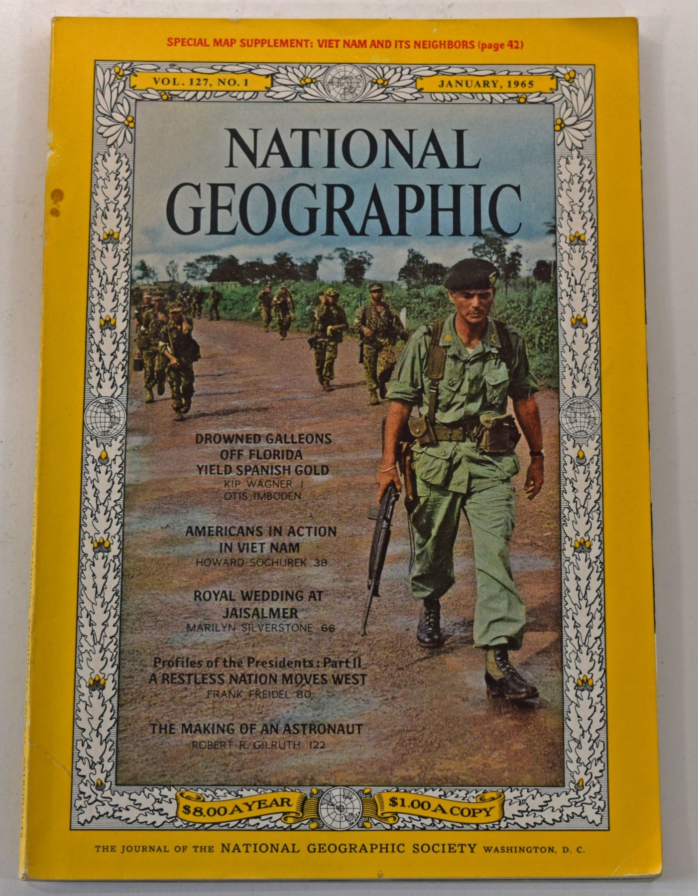 This lot contains the January 1965 issue of the popular magazine, National Georgraphic. This particular issue is sought after for its well-known article on Kip Wagner and the nascent salvage of the 1715 Plate Fleet near Wabasso, Florida.
