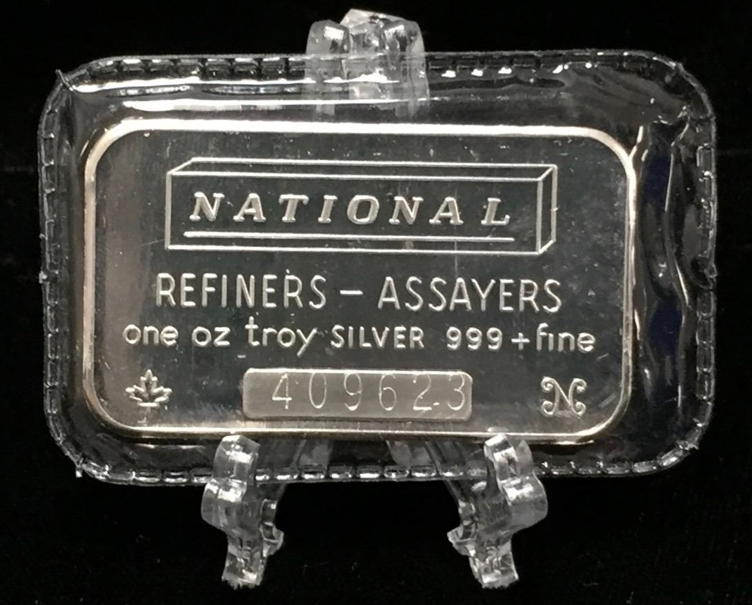 Lot 3; Fine Silver .999, National Refiners-Assayers Mint Canada 1oz Vintage Silver Bar (Sealed), Serial Number 409623