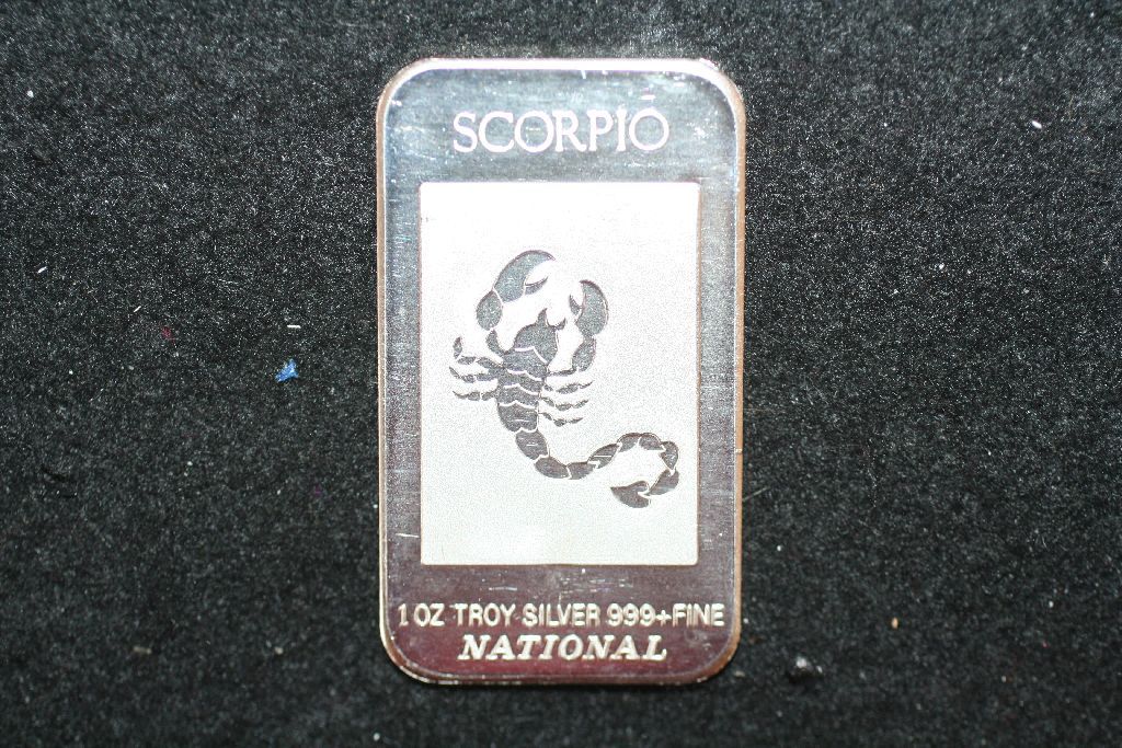 National "Scorpio" Silver Ingot; 999+ Fine Silver 1 Oz.