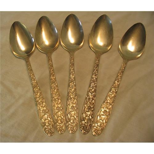 Set of 5 National Silver Co. Four of the five are marked AA Plus. The fifth is marked AA and does not have floral design on the reverse side as the others do. All in excellent condition without tarnish. Price is for all 5 pieces.