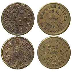 Lot of 2. 1) Eagle Gate Saloon. GF 5c IT. HR 8. C1905. 2) New Star Saloon63 W. 1st So. Street. GF 5c IT. J. Stevenson LR 6. C1900. City: