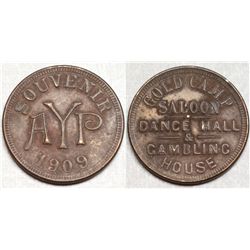 Both of these come from the Red Top in Goldfield, Nevada. 1) Red Top Bar / Ajax & Martin / Goldfield, Nev // GF 6 1/4c IT. Round. Brass. 2) Red ...