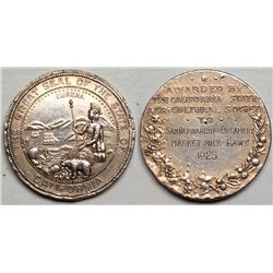 Obverse: state seal of California; reverse: Awarded By / The California State / Agricultural Society / To / San Bernardino Creamery / Market Milk Raw