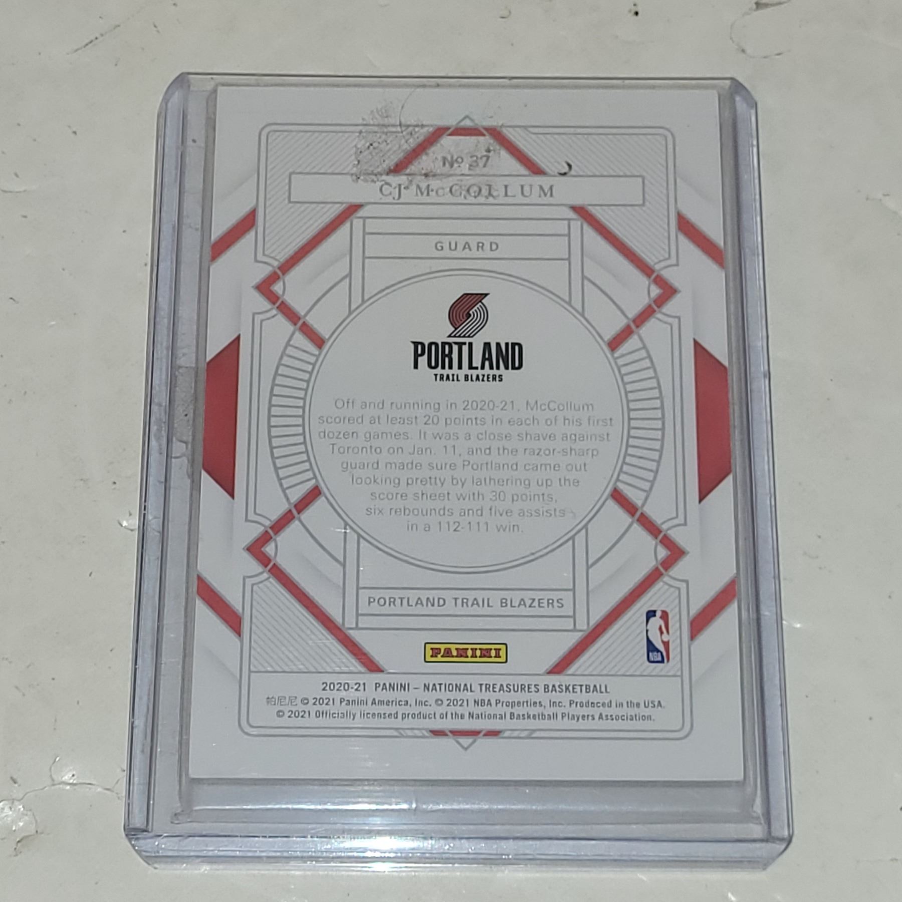 National Treasues #37 CJ McCollum Portland Limited Edition 20/99