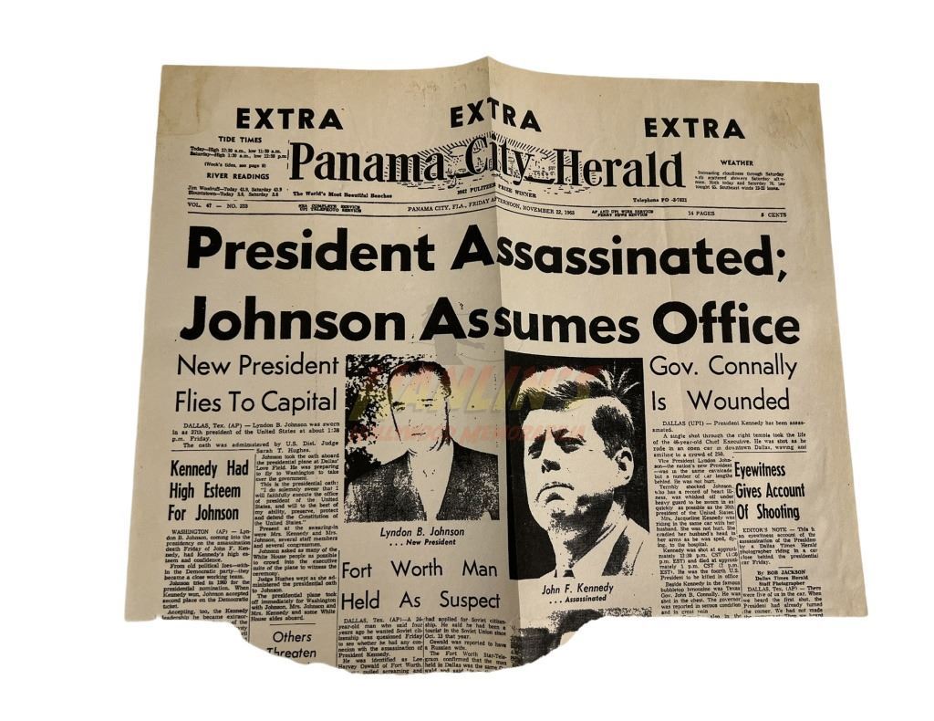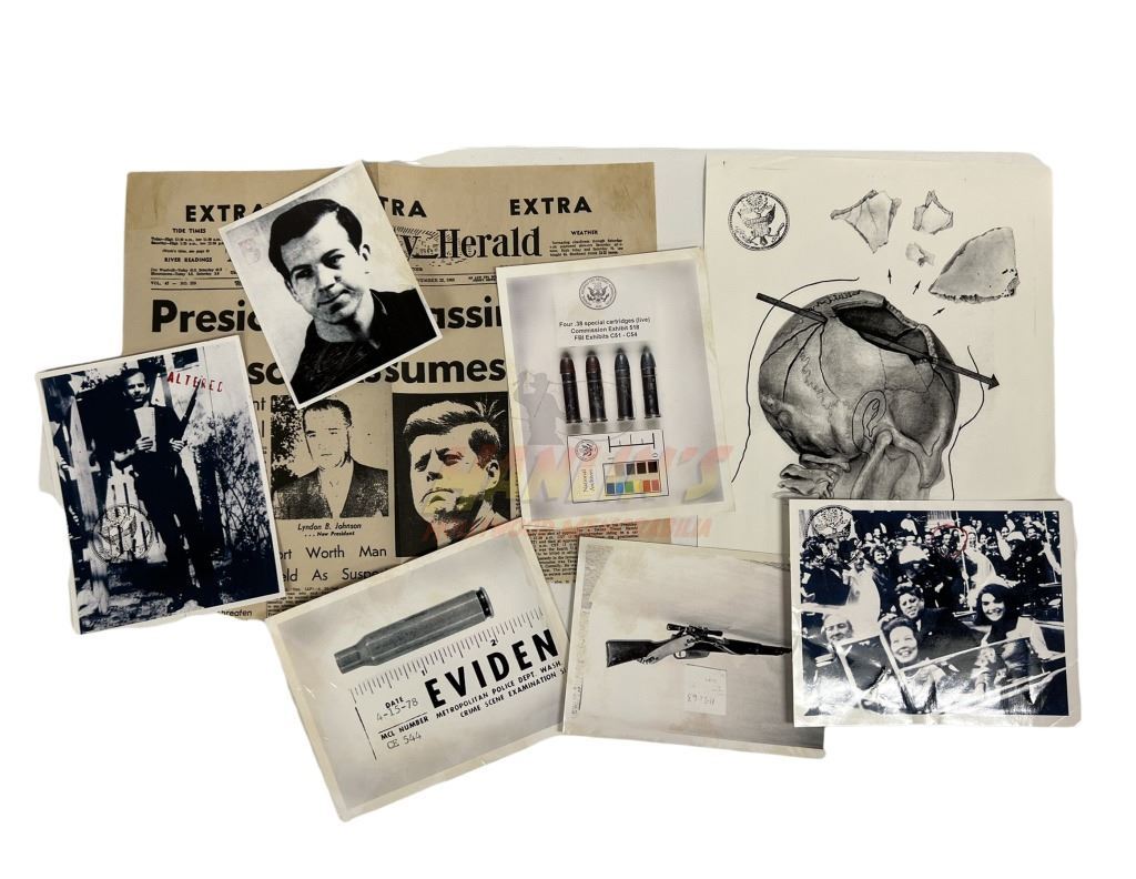 Original set of 8 pages from the President's Book relating to the Kennedy Assassination used on the production of the Jerry Bruckheimer produced action-adventure film 'National Treasure: Book of Secrets' (2007), where Benjamin Gates (Cage) must follow a clue left in John Wilkes Booth's diary to prove his ancestor's innocence in the assassination of Abraham Lincoln.