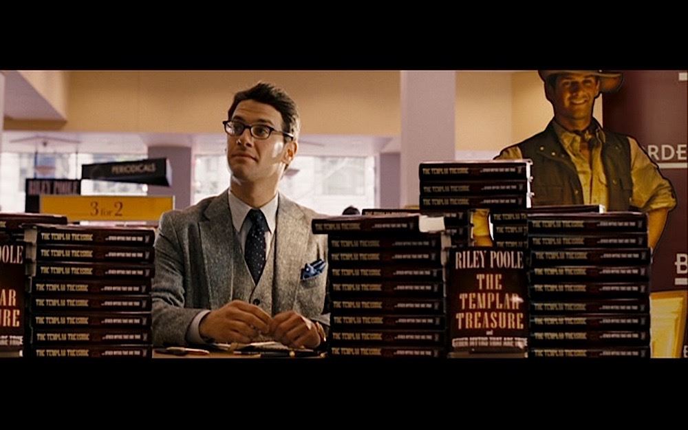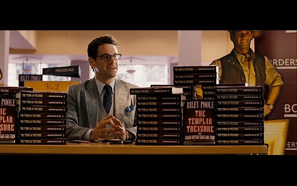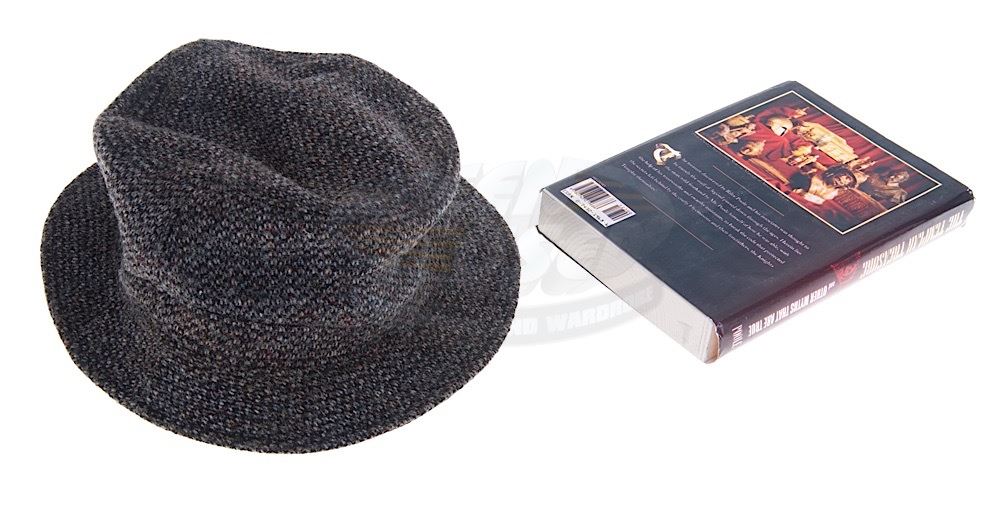 (Walt Disney Pictures, 2007) This hat was acquired by the production for use by Jon Voight as "Patrick Gates". The tweed hat is a size XX-large and remains in very good condition. This style hat is similar to the hat seen on screen, but is an unused back-up to the screen used version. Included with the hat is one of the prop books that were custom-printed for the production and used by Justin Bartha as "Riley Poole". The book consists of a custom-printed cover applied to a piece of wood painted white. The cover features the title "The Templar Treasure and Other Myths That Are True" by Riley Poole with a photo of part of the treasure on the back. The prop book is in overall very good condition with only minor wear from use.