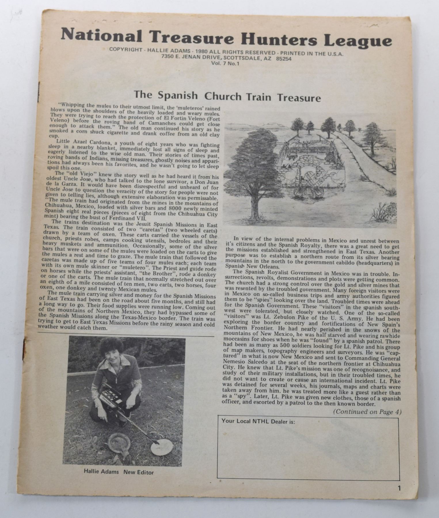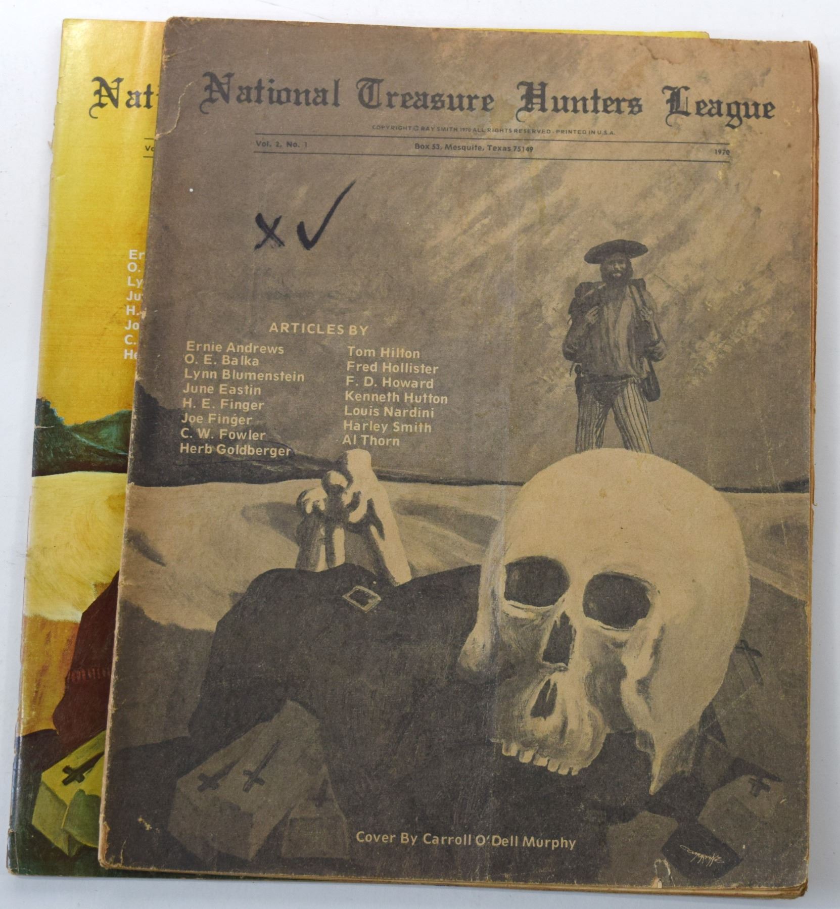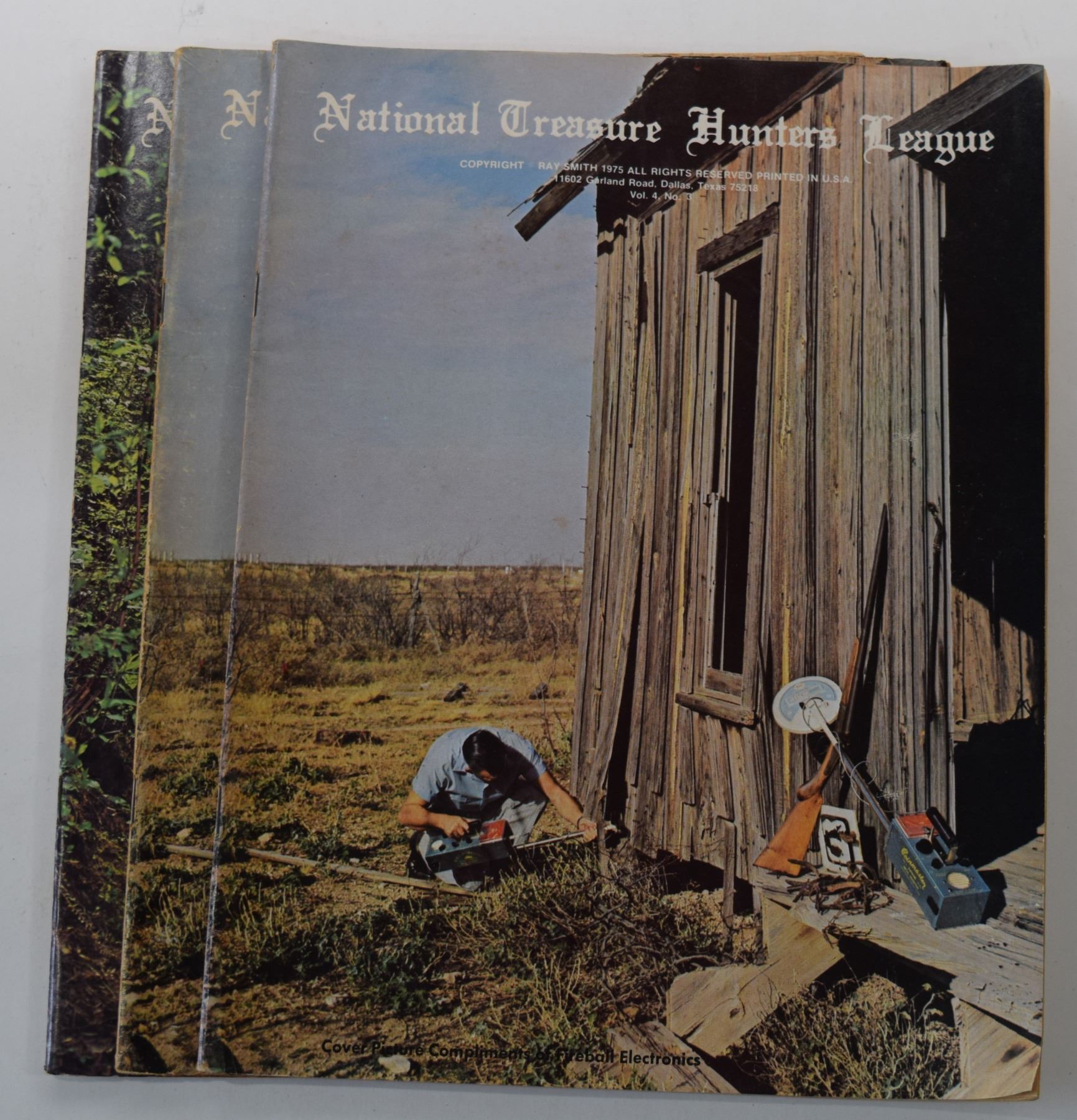 This lot contains issues of the popular treasure hunting magazine: National Treasure Hunting League for the volumes(s) 1 through 7. This magazine was published by Ray Smith out of Garland, Texas during the 1970s as a quarterly publication until its end around 1979. Issues included in this lot: