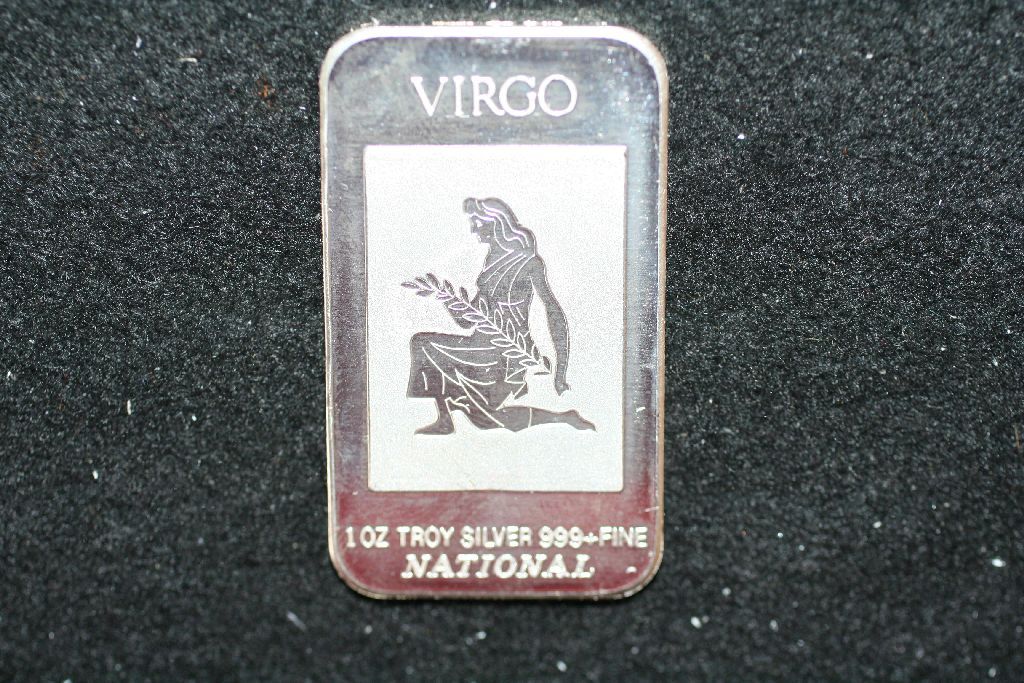 National "Virgo" Silver Ingot; 999+ Fine Silver 1 Oz.