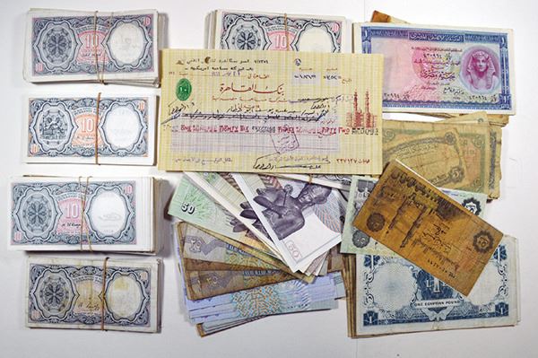 Egypt. National Bank of Egypt; Central Bank of Egypt. Currency Notes (400+). Finally a check with endorsements and revenue stamp. Generally Very Good to Gem Unc. More than 500 pieces.