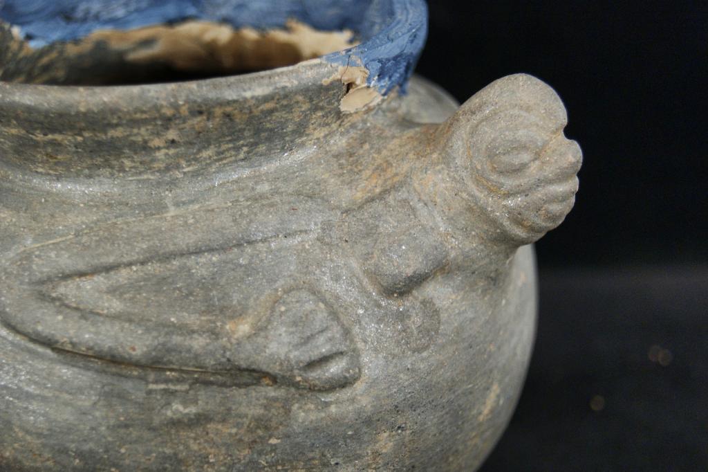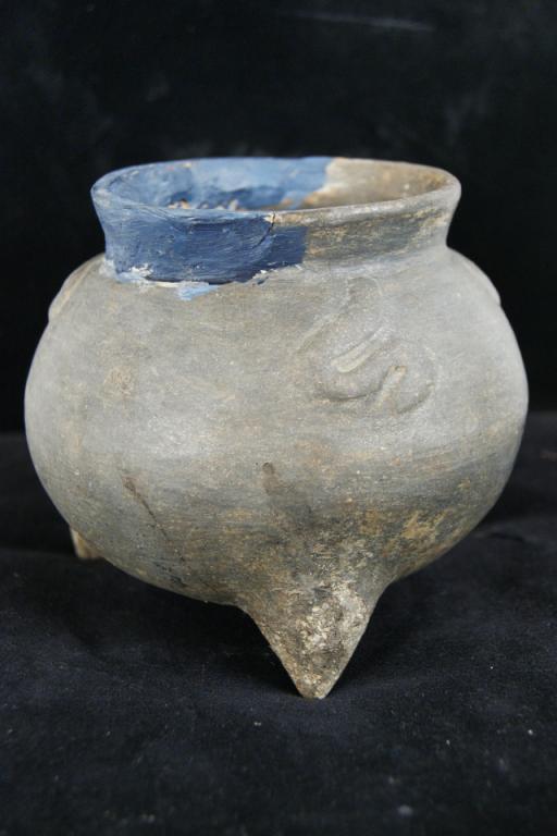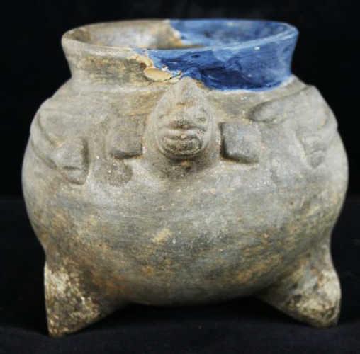 Native Am. pot w three legs - turtle effigies repair on lip...Shaman Pot, Provenance: Robert Owen Browne Museum Collection