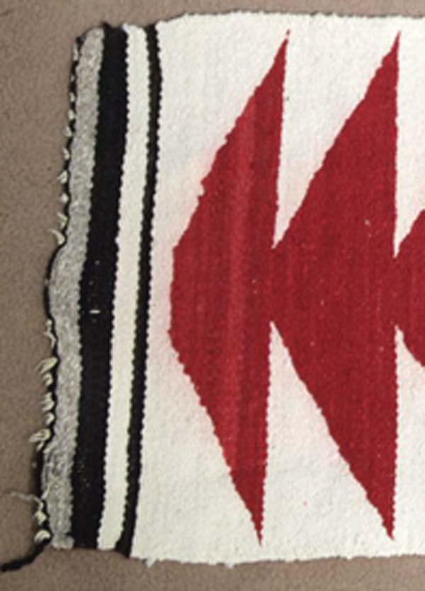 Native American 1930s Navajo Rug, red serrated diamonds on white field, homespun. Measures approx. 38.5'' x 18.25''. Buyers Pay Actual Shipping and Handling Charges(see terms and conditions for more information).