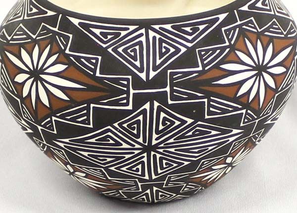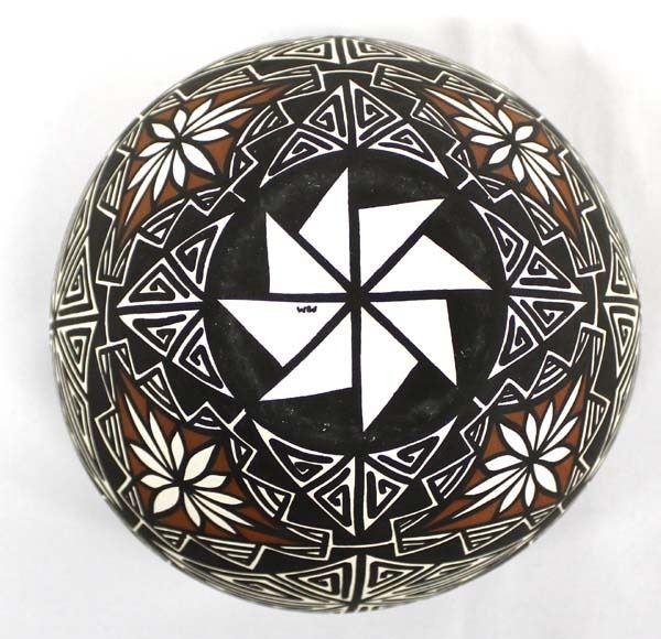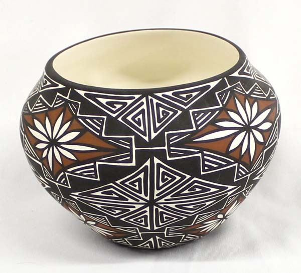 Native American Acoma Eye Dazzler Pottery Bowl, artist's initials on the bottom, PSM or PDM, measures 5'' x 6'', stunning piece of pottery