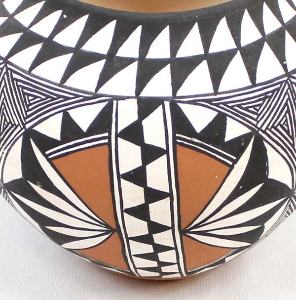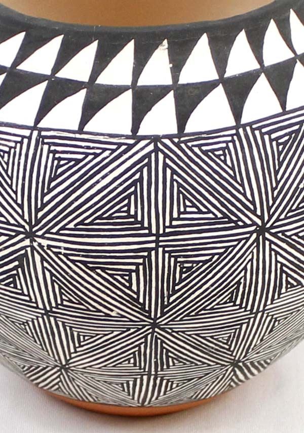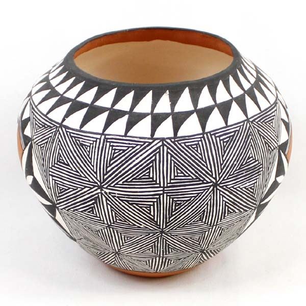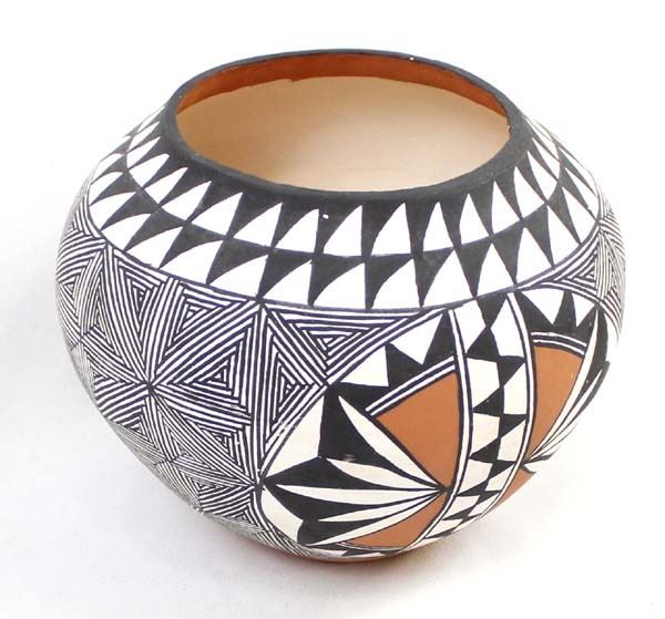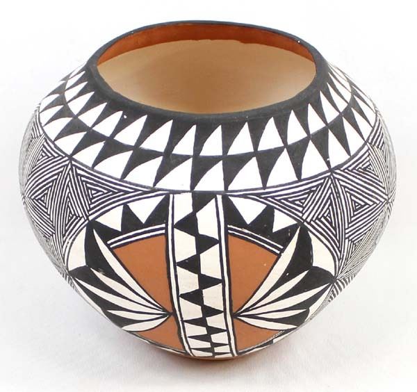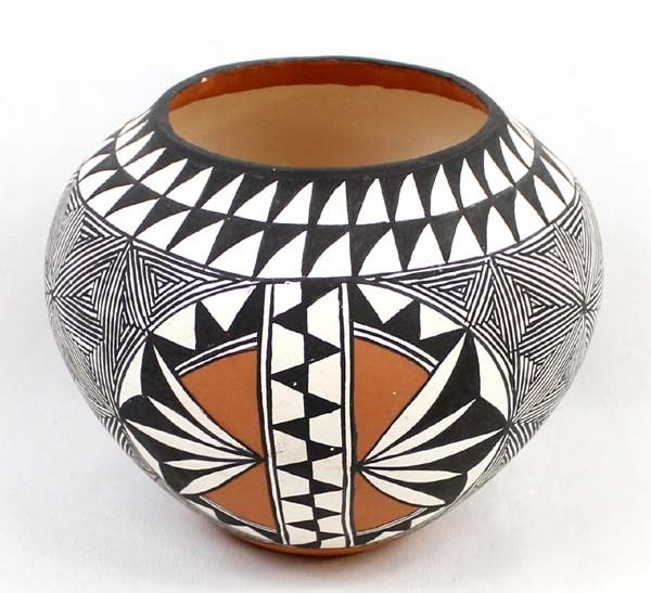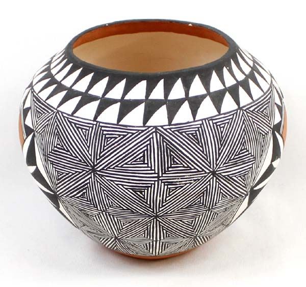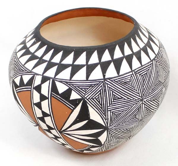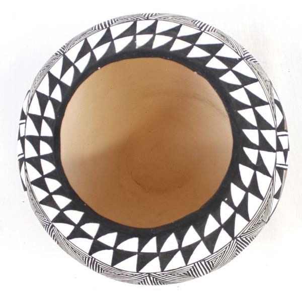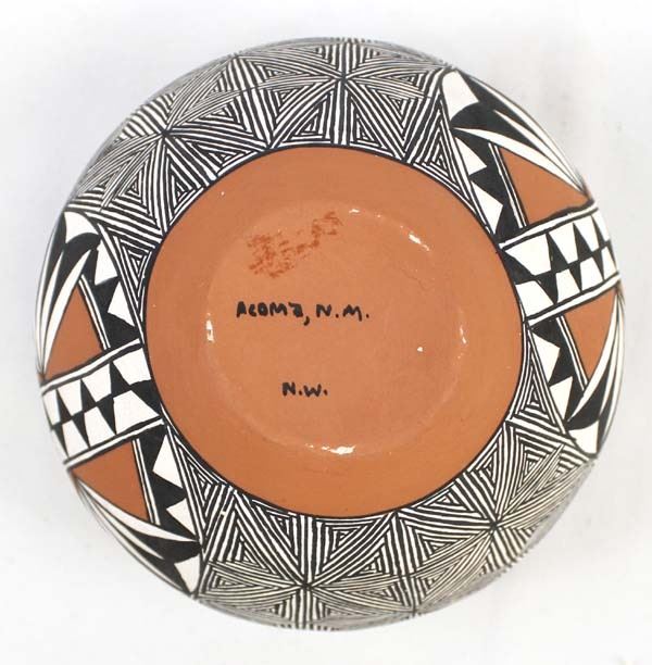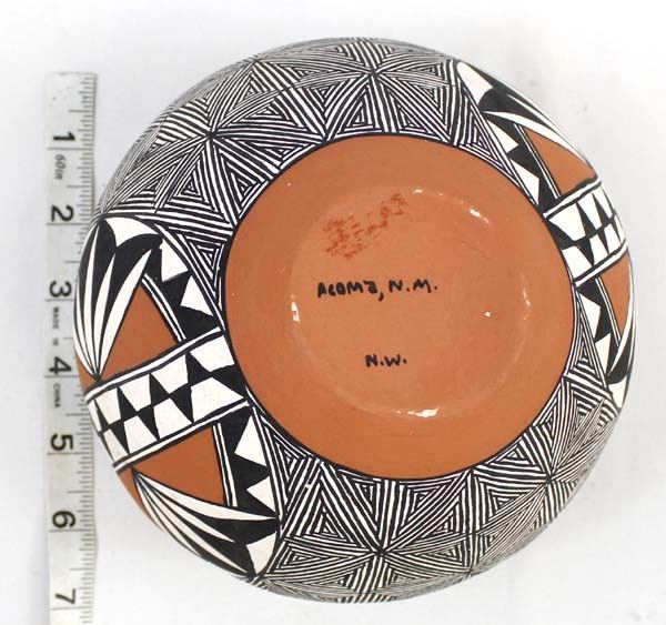 Native American Acoma Eye Dazzler Pottery Bowl, measures 6'' x 7'' and has artist's initials on the bottom