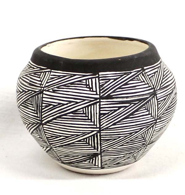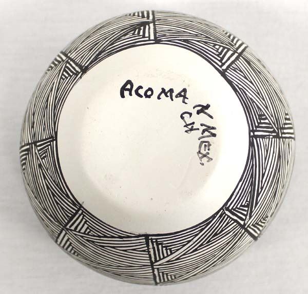 Native American Acoma Fine Line Pottery Bowl, has artist's intials on the bottom CH, measures 3'' x 4''