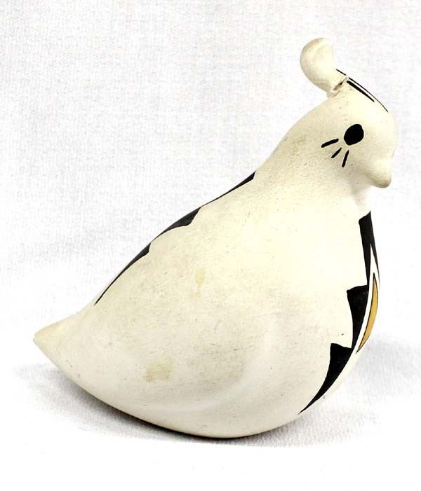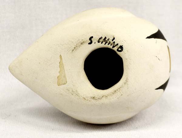 Native American Acoma Hand Painted Ceramic Quail by S. Chino, measures 4'' x 4''
