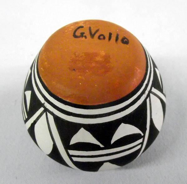 Native American Acoma Miniature Pot By G. Vollo. Measures approx. 2''Diameter. Buyers Pay Actual Shipping and Handling Charges(see terms and conditions for more information).