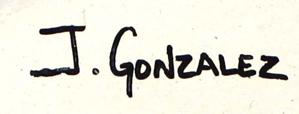 Native American Acoma Pottery Jar by J. Gonzalez, measures 7.5'' x 9'' and is signed on the bottom, beautiful lines and designs, gorgeous colors