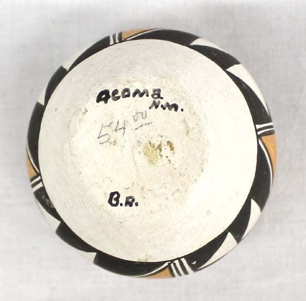 Native American Acoma Polychrome Pottery Jar, measures 3.25'' x 4'' and has artist's initials B.R. on the bottom