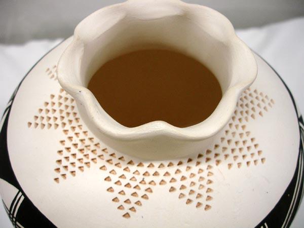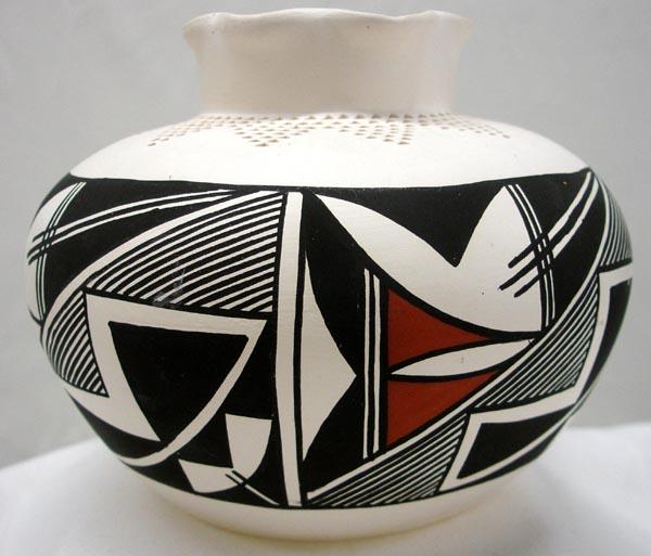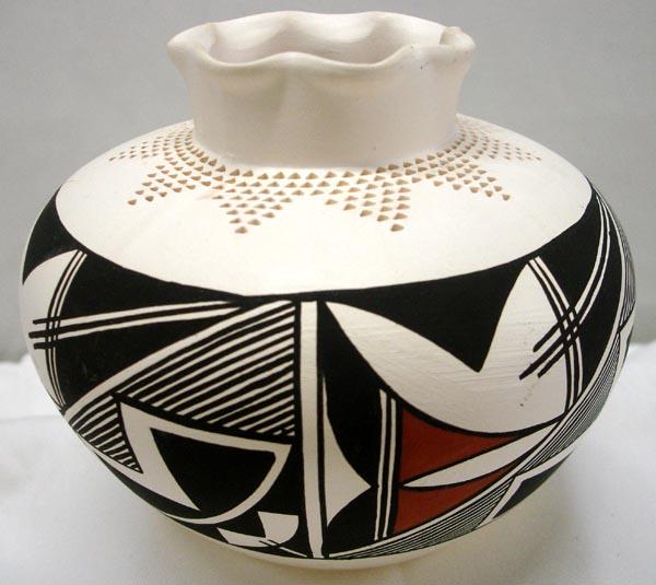Native American Acoma Polychrome Pottery by A. Concho Acoma NM, fluted and textured rim, measures approx. 6.25''Diameter x 5''H. Buyers Pay Actual Shipping and Handling Charges(see terms and conditions for more information)
