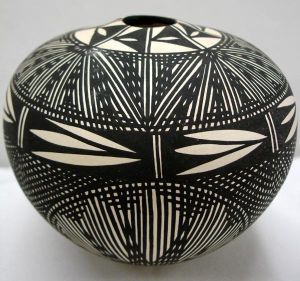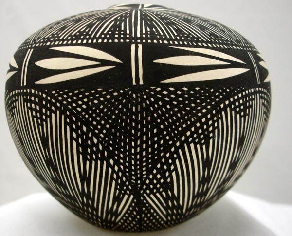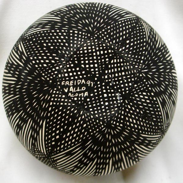 Native American Acoma Fine Line Seed Pot by Freida Vallo, measures approx. 4''H x 5''Diameter. Buyers Pay Actual Shipping and Handling Charges(see terms and conditions for more information)