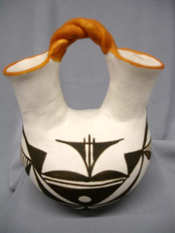 Native American Acoma Wedding Vase by Norma Jean 10-30-02, measures 5'' x 3.5'' x 4''. Buyers Pay Actual Shipping and Handling Charges(see terms and conditions for more information).