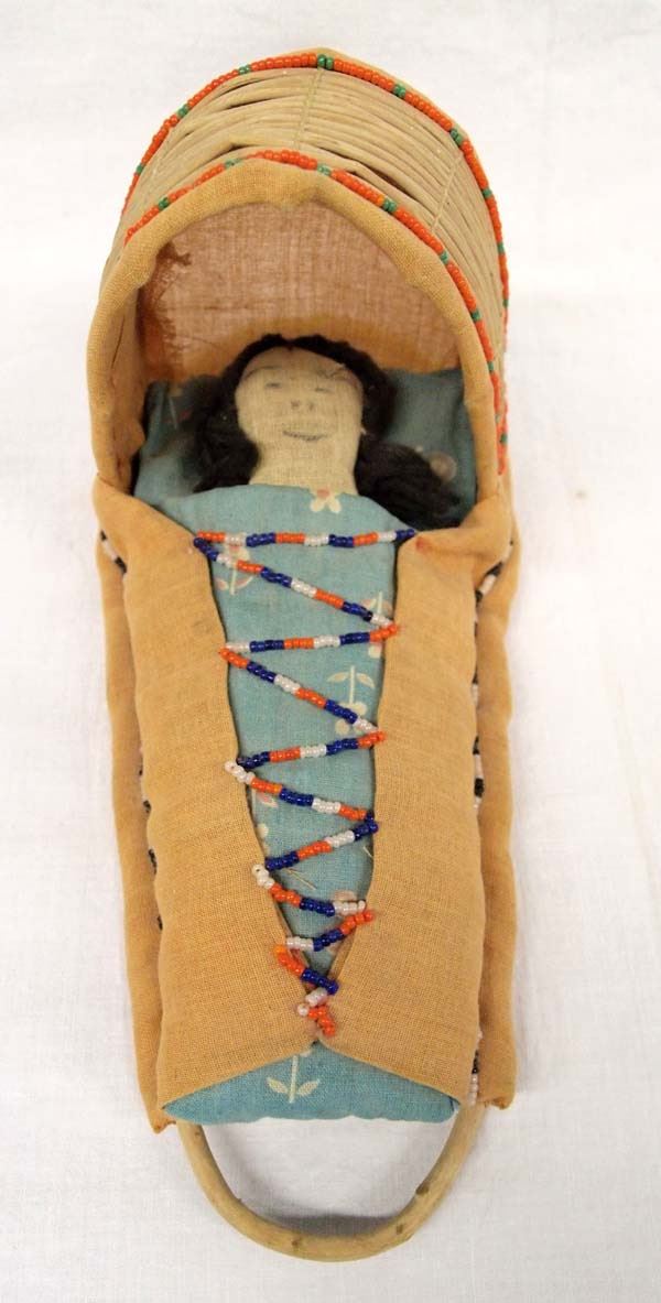 From the Whittredge Estate, we have a Native American Apache Cloth Doll in Cradleboard, measures 10.5''L x 4.25''W x 4.75''H