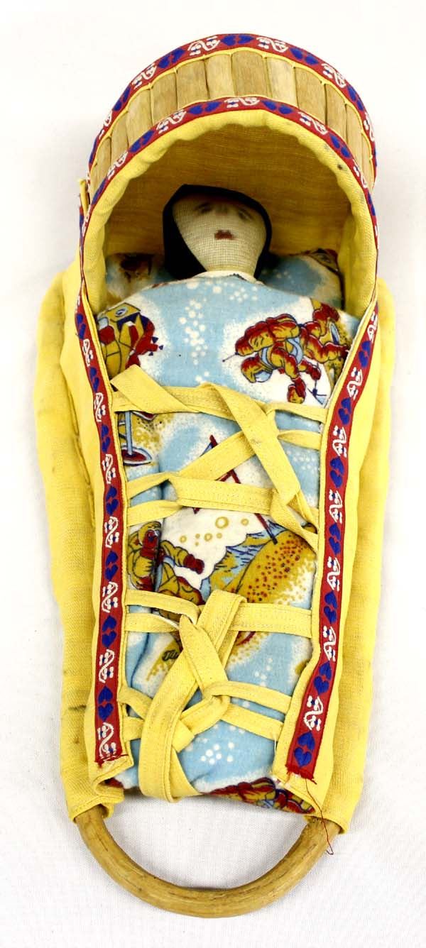 Native American Apache Cradleboard and Doll, measures 15.5''L x 7''H x 8''W