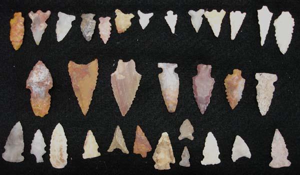 Native American Arrow/Spear Points in Riker Box. 32 points. Longest is 2''. Buyers Pay Actual Shipping and Handling Charges(see terms and conditions for more information).